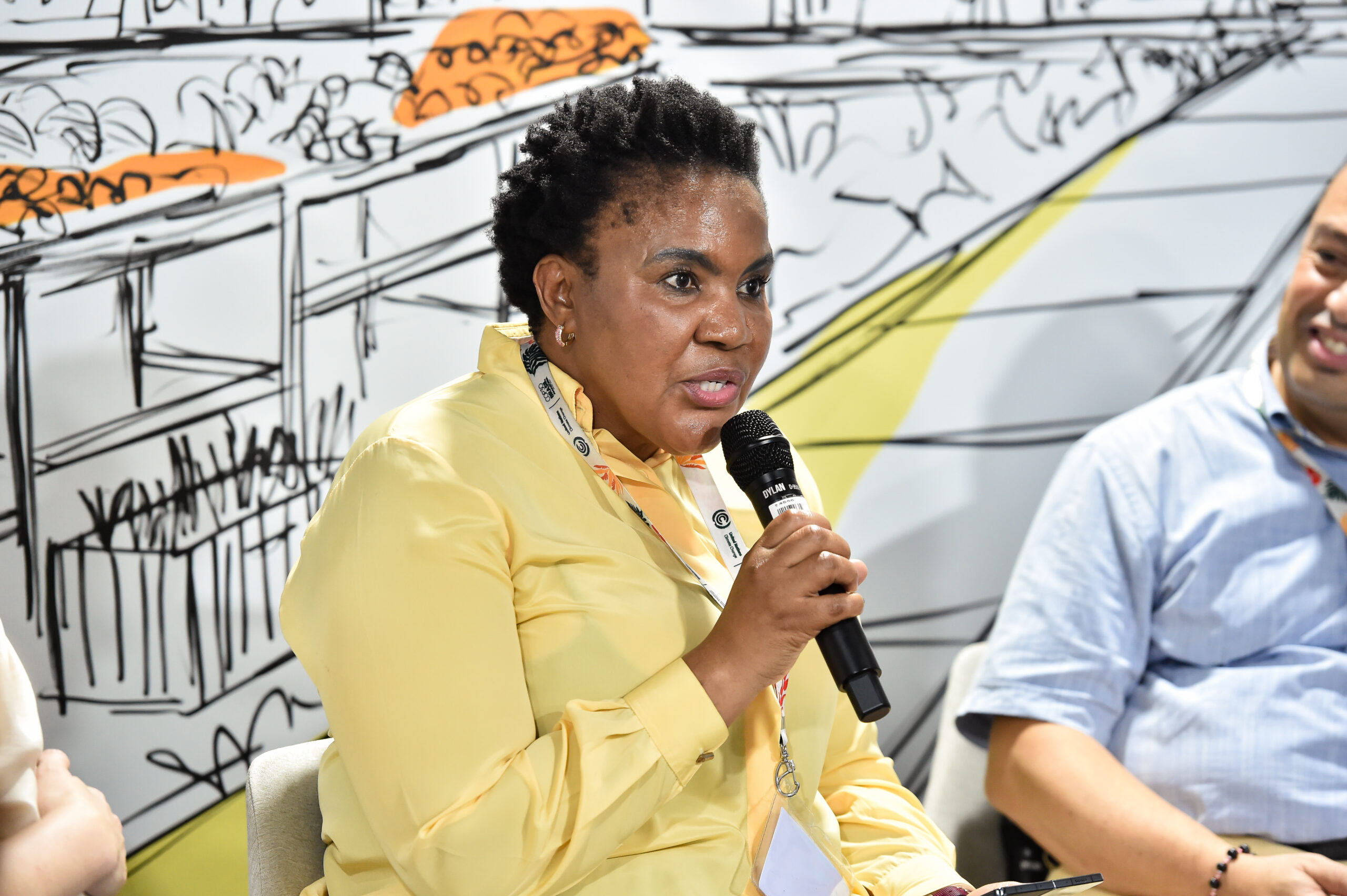 At a session focused on Town Hall COPs (THCs) in the Cities and Regions Hub, ICLEI member, Mayor of Tswelopele, Kenalemang Rose Phukuntsi, affirmed that the nine THCs, held across South Africa, fed directly into municipal climate response plans that are part of the National Climate Change Act implementation: “Our journey began in July 2025 when SALGA invited mayors to host Town Hall COPs. The response from mayors was remarkable. 60% of events included national representatives, creating a feedback loop between communities and policymakers.” (Pictured on the right)