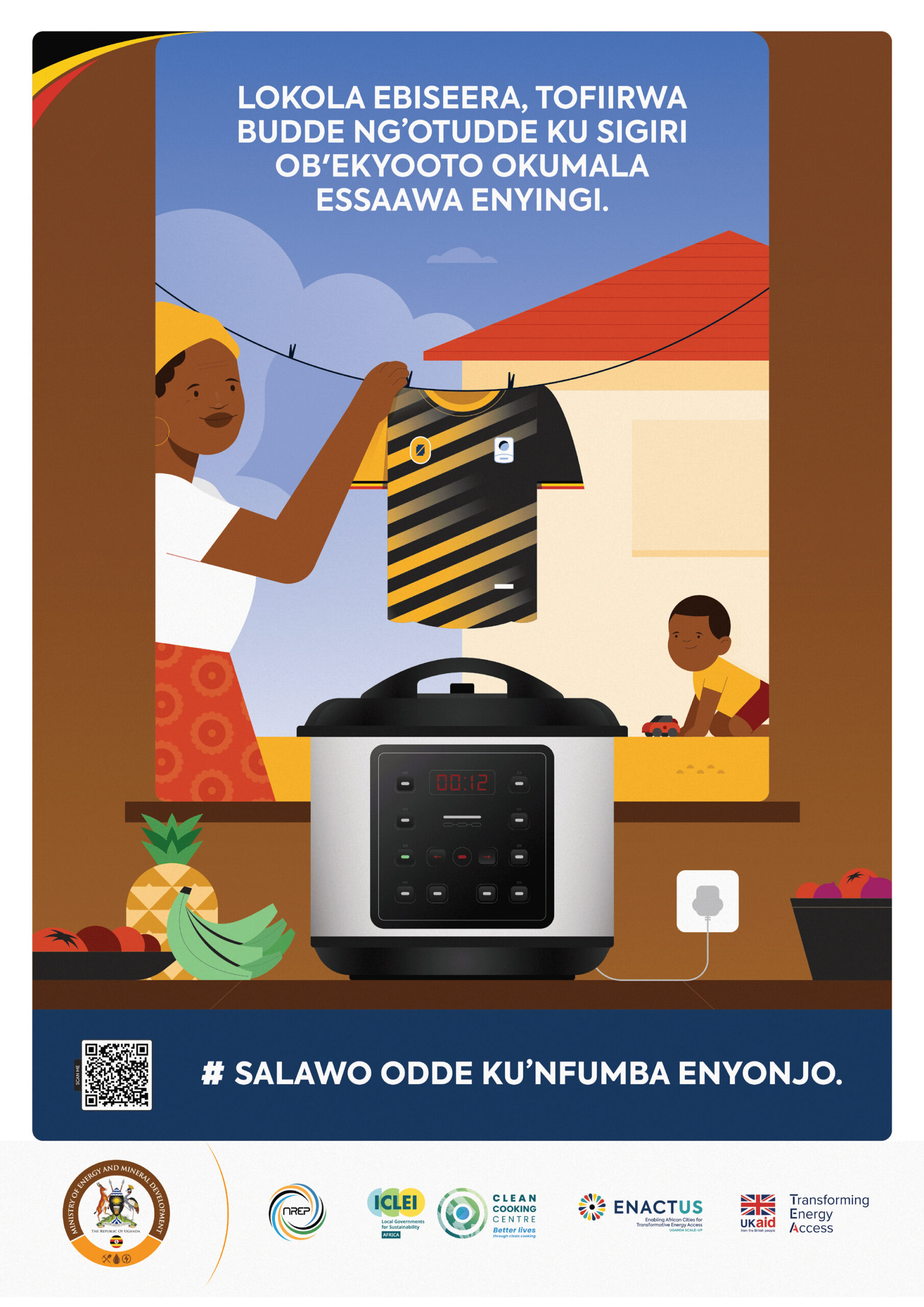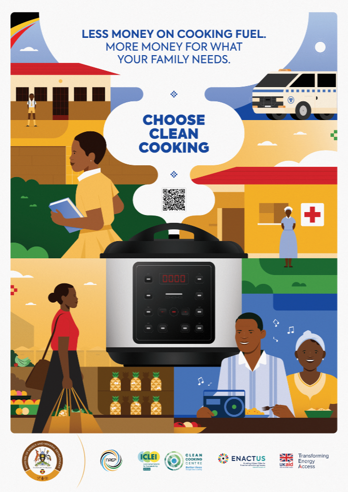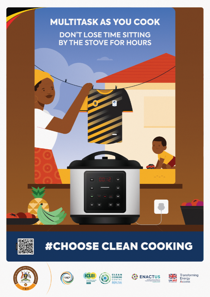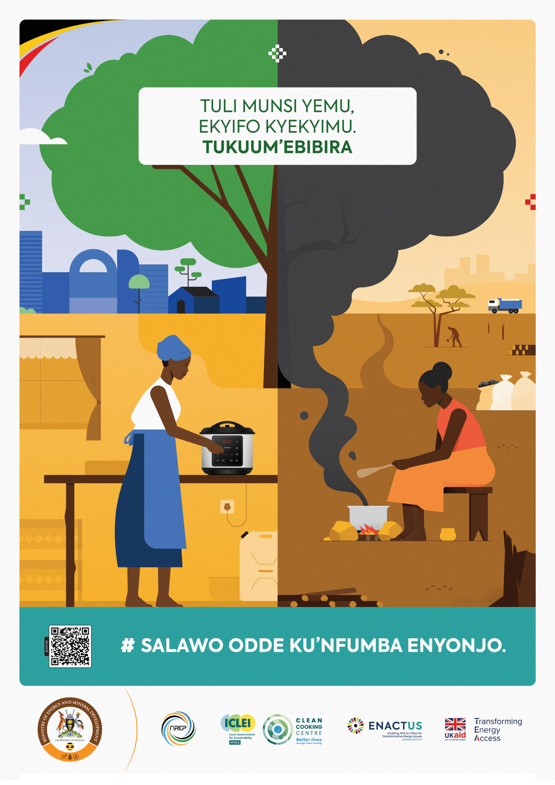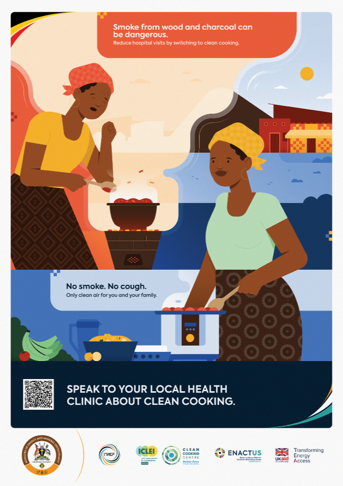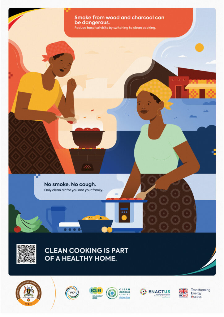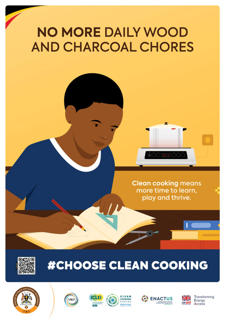 The materials are designed to be practical tools for awareness-raising. Government departments, local authorities, CSOs, and private sector partners can display the posters in public spaces, integrate them into community dialogues, and use them in trainings or outreach campaigns. Their purpose is to translate national clean cooking goals into simple, relatable messages that resonate with households and decision-makers alike—helping to shift perceptions, build demand for modern cooking solutions, and strengthen Uganda’s collective progress toward a clean cooking energy transition.