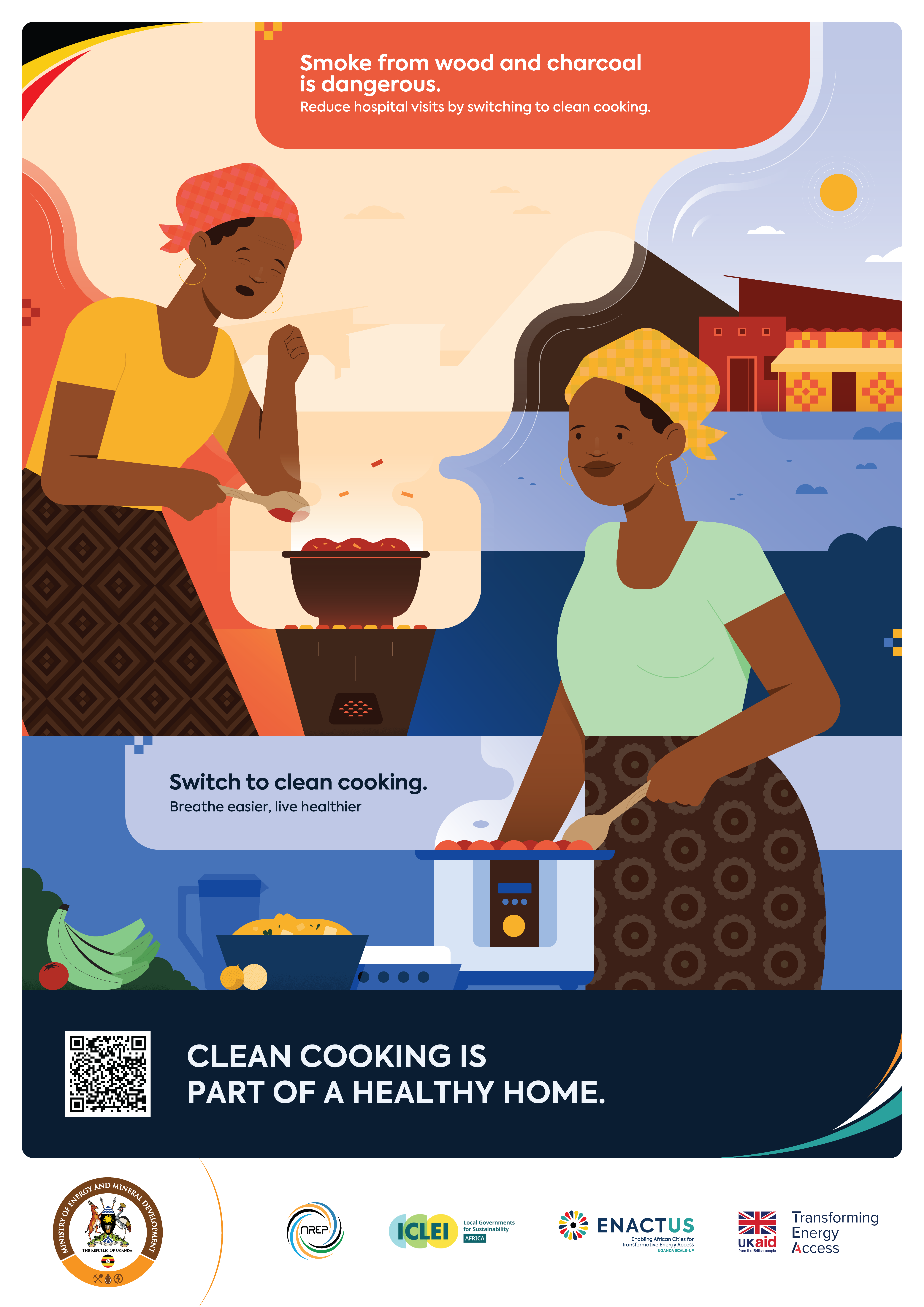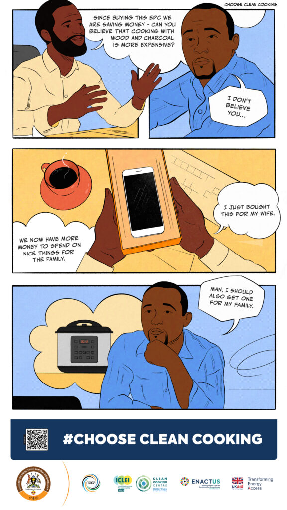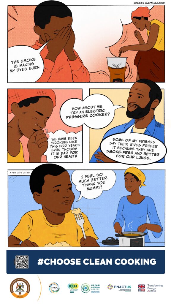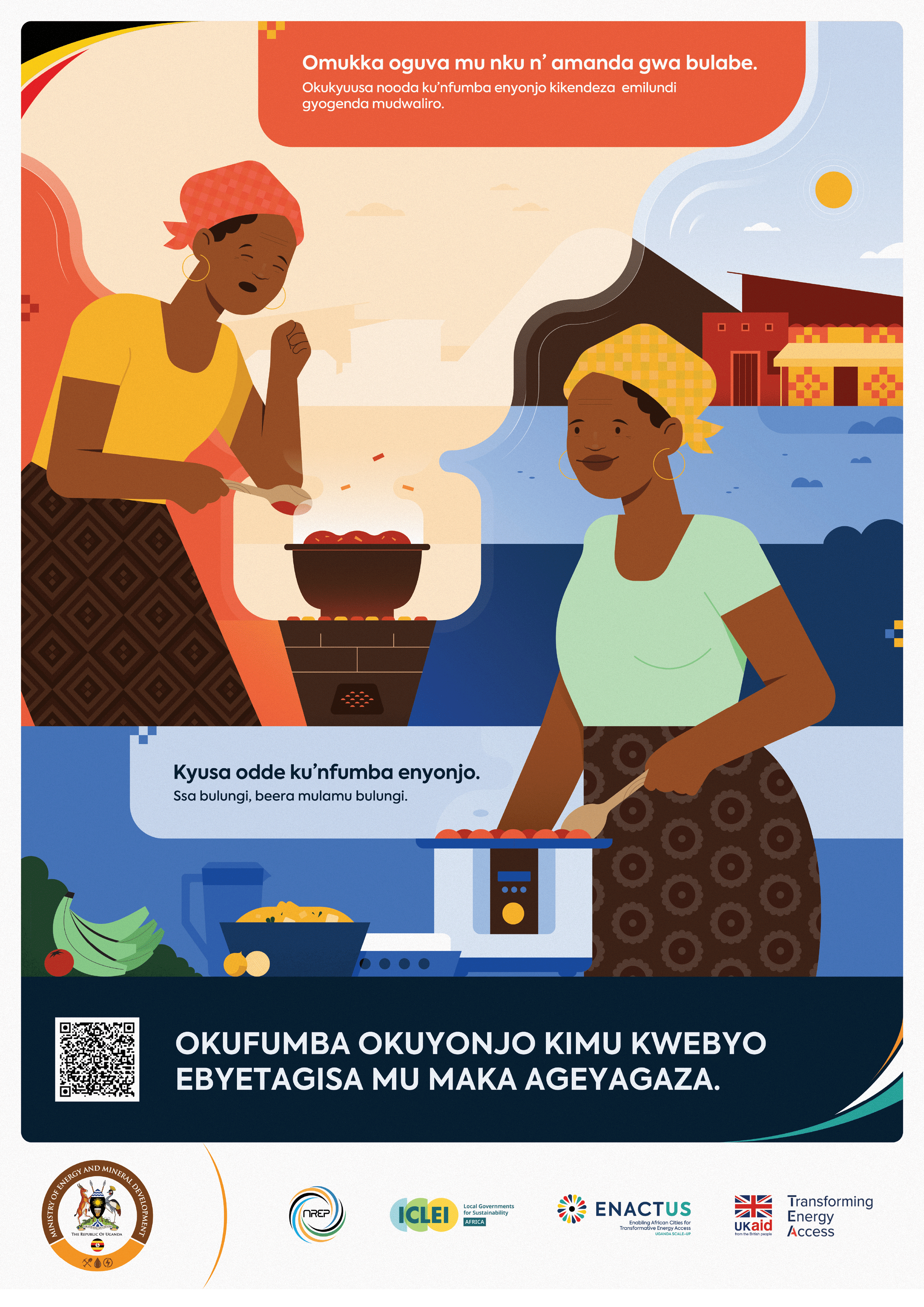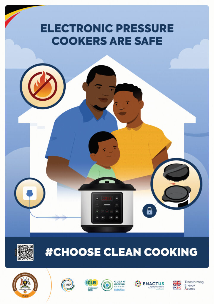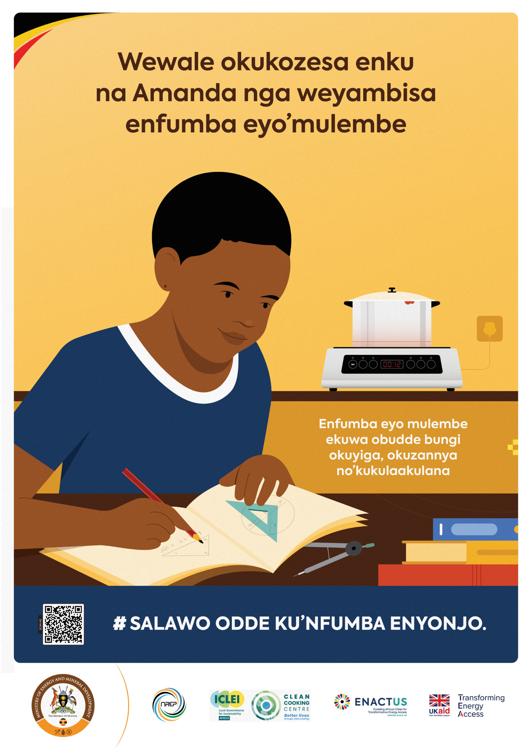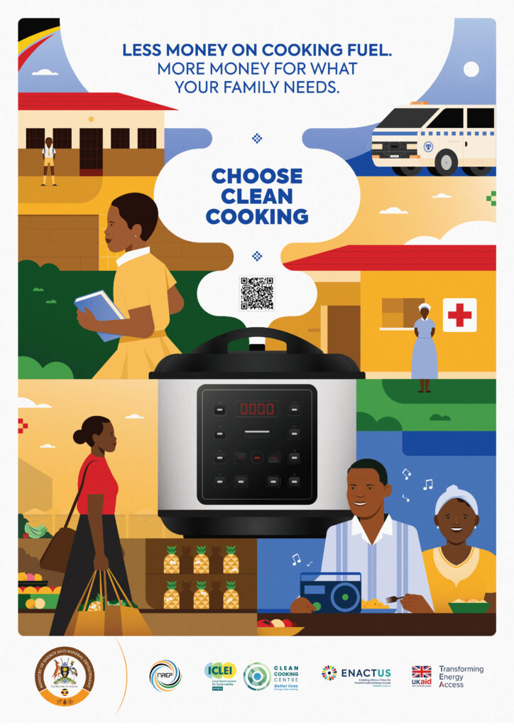 The materials are designed to be practical tools for awareness-raising. Government departments, local authorities, CSOs, and private sector partners can display the posters in public spaces, integrate them into community dialogues, and use them in trainings or outreach campaigns. Their purpose is to translate national clean cooking goals into simple, relatable messages that resonate with households and decision-makers alike—helping to shift perceptions, build demand for modern cooking solutions, and strengthen Uganda’s collective progress toward a clean cooking energy transition.