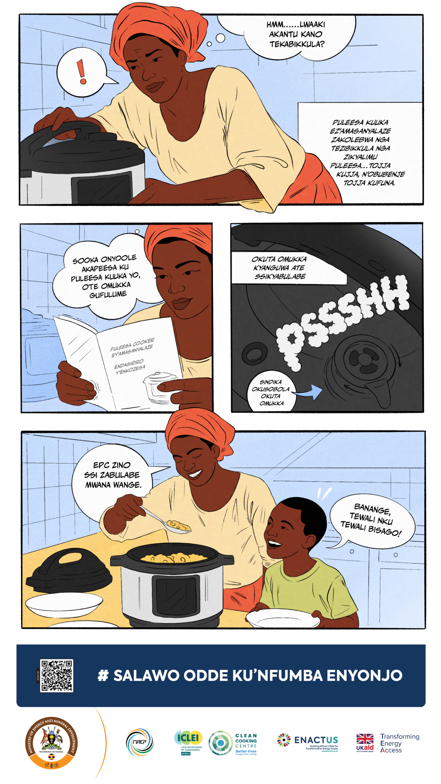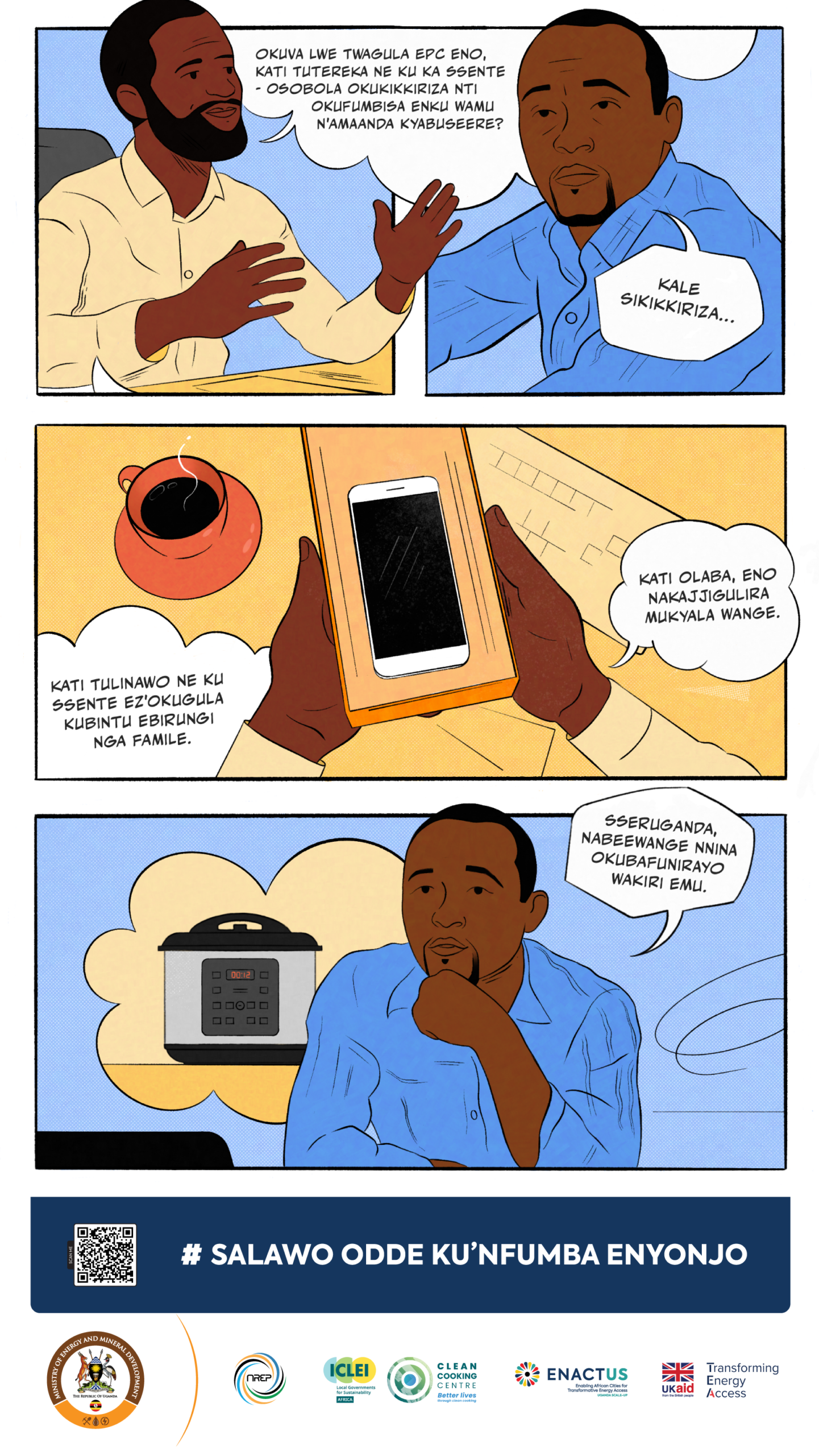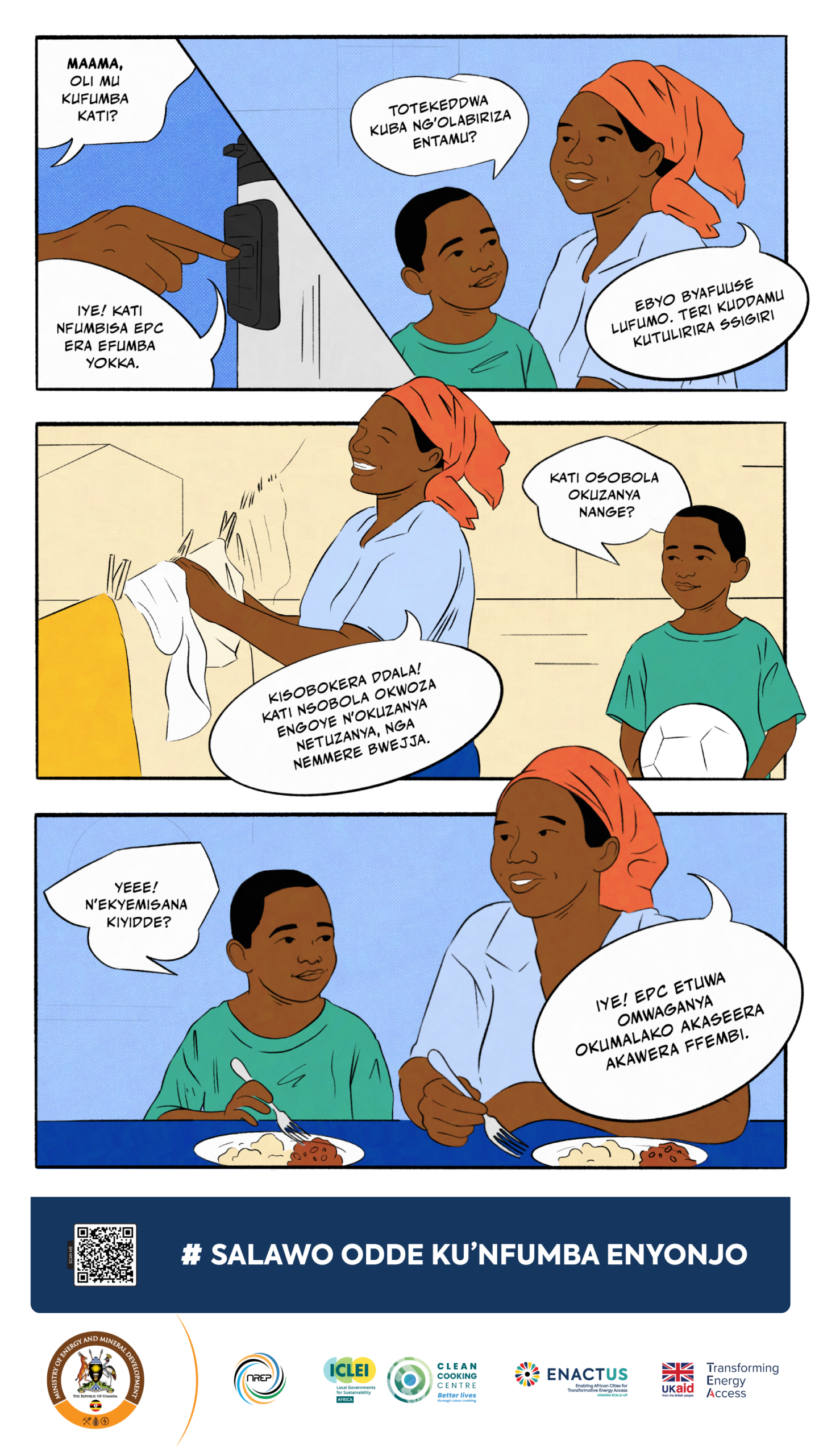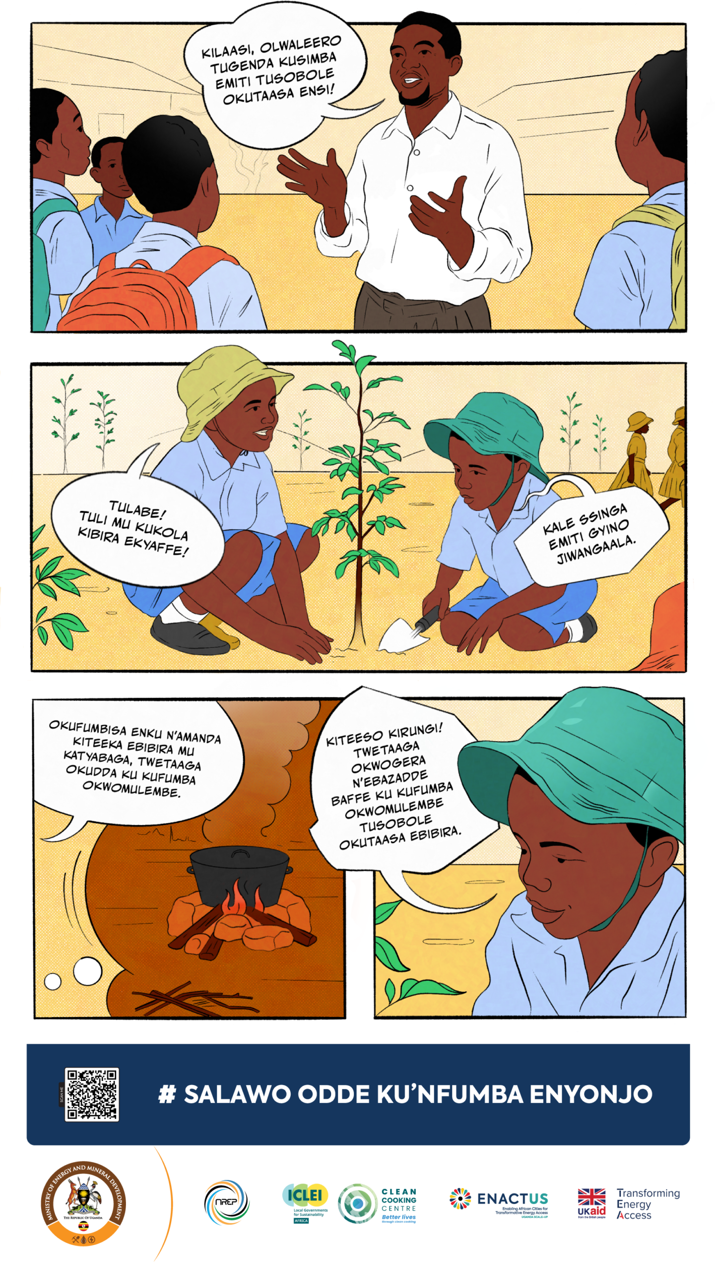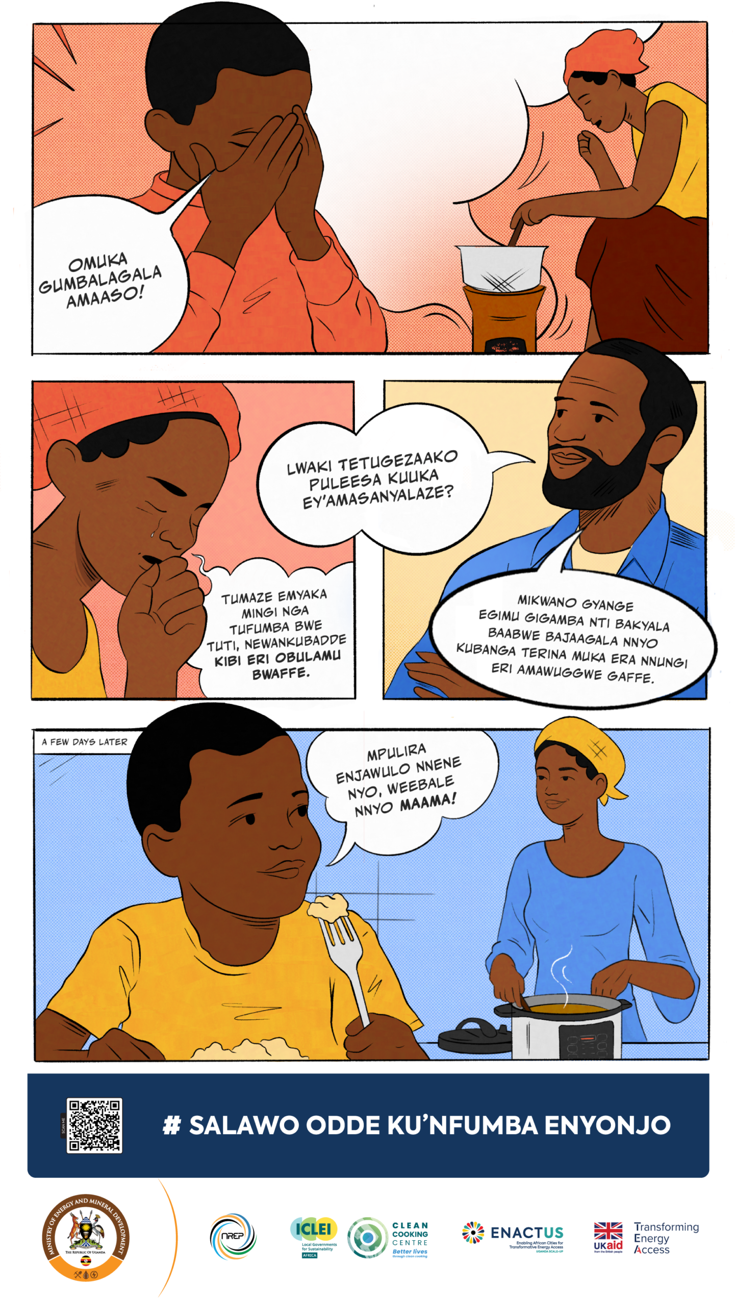 The materials are designed to be practical tools for awareness-raising. Government departments, local authorities, CSOs, and private sector partners can display the posters in public spaces, integrate them into community dialogues, and use them in trainings or outreach campaigns. Their purpose is to translate national clean cooking goals into simple, relatable messages that resonate with households and decision-makers alike—helping to shift perceptions, build demand for modern cooking solutions, and strengthen Uganda’s collective progress toward a clean cooking energy transition.
