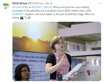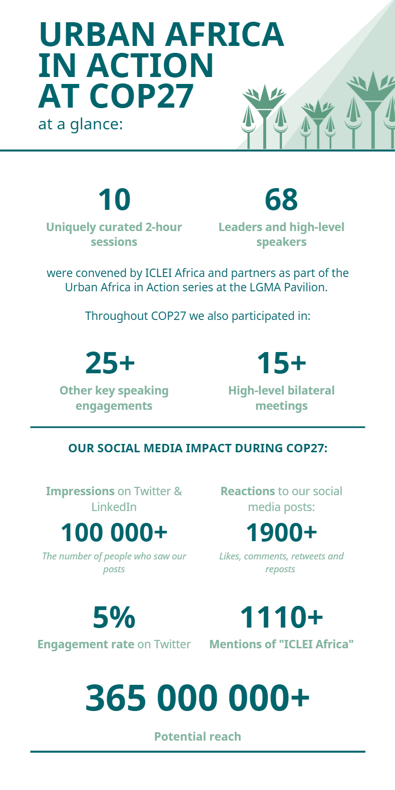 Below are highlights from each Urban Africa in Action session, as well as a snapshot of high-level speaking engagements and bilaterals held by the ICLEI Africa team at COP27.