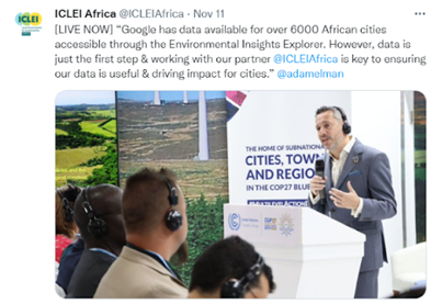 Google has data available for over 6000 African cities accessible through the Environmental Insights Explorer. However, data is just the first step. Working with our partner, ICLEI Africa, is key to ensuring our data is useful and driving impact for cities.” – Mr Adam Elman (Head of Sustainability – EMEA, Google)