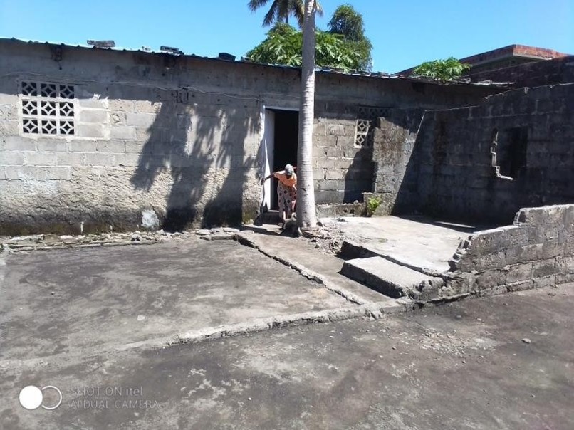 “Block house with damaged sheets caused by fallen trees during Cyclone Idai. The waters last for 2 days in her backyard. Areas are subdivided into plots, but at risk due to flooding. However, her land is below the level of the ditches. With an open street and damaged with large holes that do not allow cars and people to pass when it rains.”