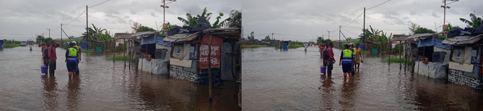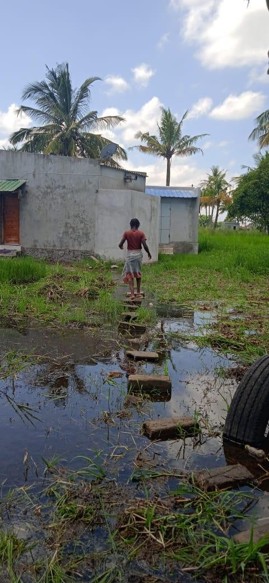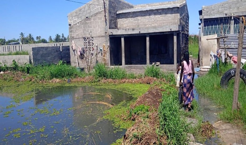 In these rapidly expanding, low-lying areas, cement block houses often stand marooned in muddy, flooded yards. Homes and yards are regularly inundated, creating stagnant pools that serve as breeding grounds for mosquitoes and waterborne diseases. For some families, the water recedes within a week; for others, it stagnates for months. This prolonged flooding compounds daily hardships, posing serious health and safety risks while limiting access to education and income-generating activities.