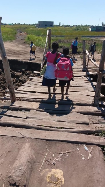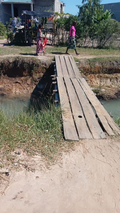 “This small bridge was built using unconventional materials. It connects the Inharimue and Bambamba areas and was constructed through the joint initiative of local leaders and the community.”