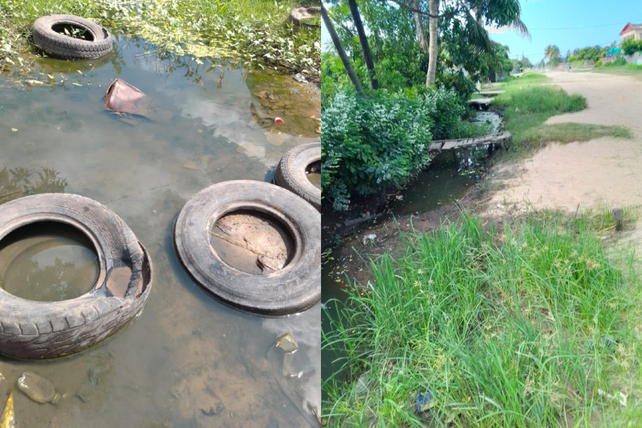 “A makeshift drainage ditch was built with the help of the community to reduce flooding. Since crossing the area is difficult, residents placed tires to make it easier for people to pass through”