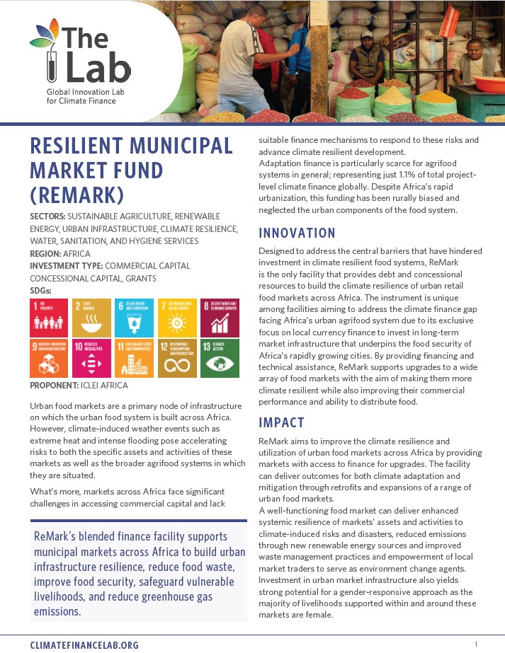 Urban food markets are a primary node of infrastructure on which the urban food system is built across Africa. However, climate-induced weather events such as extreme heat and intense flooding pose accelerating risks to both the specific assets and activities of these markets as well as the broader agrifood systems in which they are situated.