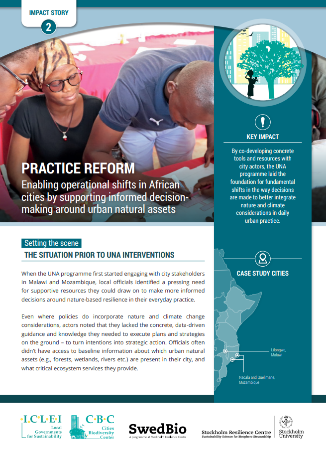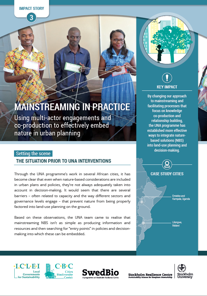 Through the UNA Rivers for Life project, Kampala, Uganda embedded nature into its urban planning systems by co-producing natural asset hotspot maps with local and national stakeholders. These maps identified key areas that need protection based on their vulnerability to climate risks and urban development pressures, as well as the essential ecosystem services they provide, such as flood regulation, water purification, and biodiversity support. They are now being used in everyday decision-making. The process built cross-departmental relationships and clarified institutional roles, improving coordination and trust. The maps and resulting recommendations have been integrated into the City’s Resilience Strategy, influencing planning, water management and climate adaptation efforts.